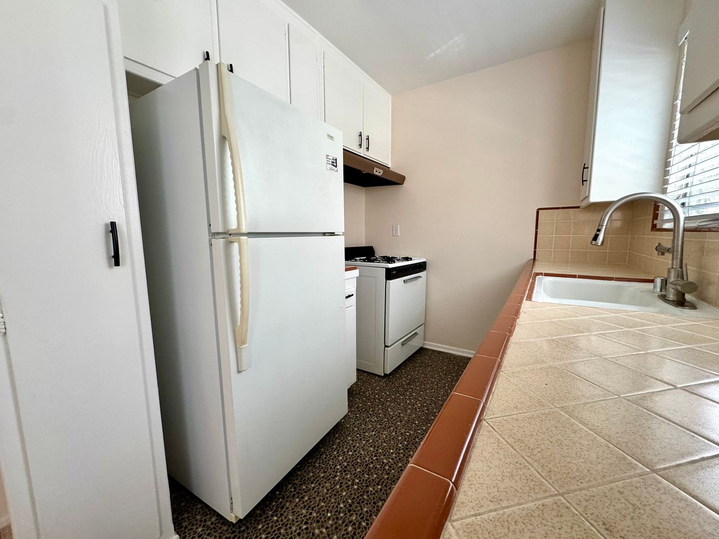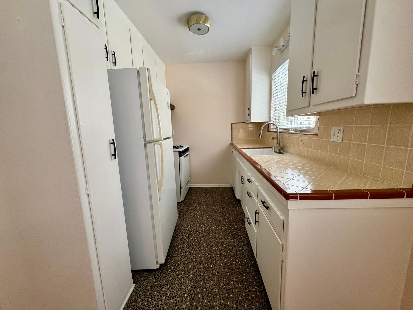 Cool 1957 Retro One Bedroom Apartment just up the street from Trendy King's Road and Blue Bottle Cafes! Refinished Hardwood Floors, carpeting in Bedroom, Canned Lights in Living Room, Sputnick Fixture in Dining Room, Cool Original Tile in Kitchen and Bath, air conditioning in the bedroom & living room! Bright and airy lower-rear unit with only one common wall. Only 7 Units, super quiet building, and a laundry room. Machines operate with a phone app, so no digging for quarters. Great Walkable Neighborhood, 2 blocks to Sweet Lady Jane's (yumm!) 7 blocks from Cedars, 5 blocks to Beverly Center; and a short walk to all the Clubs, Bistro's and night life on Sunset Blvd. and in Weho! Move in ready. Only $2,250.00 per month plus one month security deposit. One parking space and non-permit unrestricted street parking is easy to find. Owner pays for water and trash. Tenant pays gas and electric. No smoking.